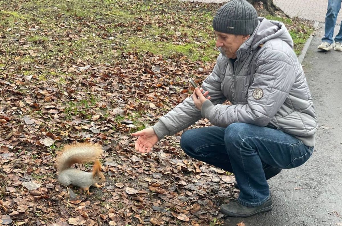 Вот и белочка пришла: в Липецке белки почти не боятся людей