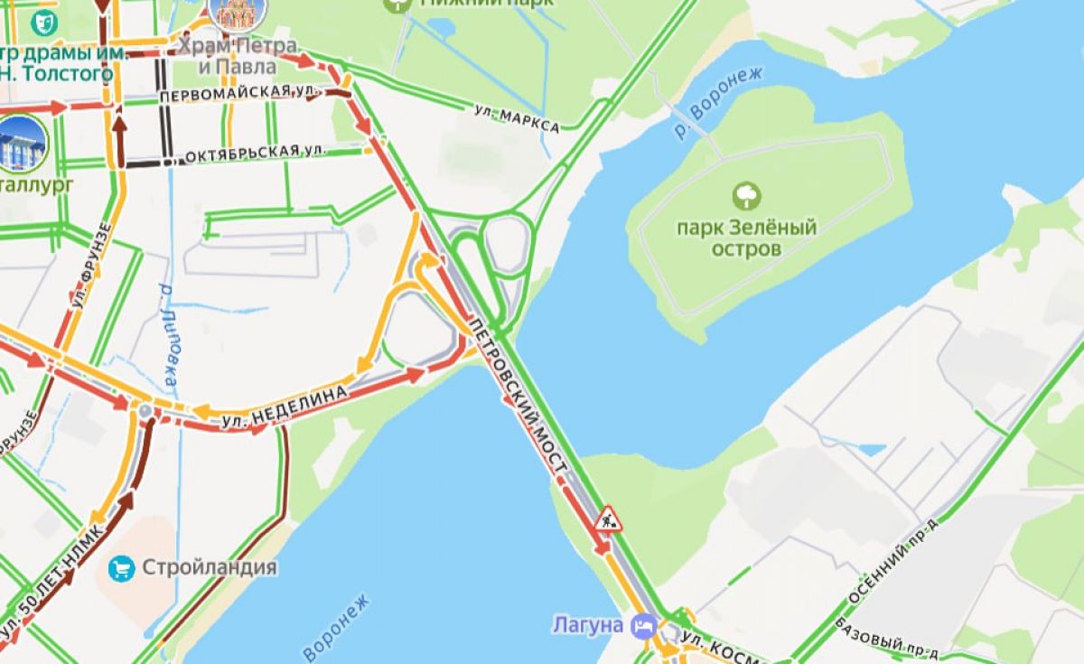 Петровский мост в Липецке встал из-за ремонта