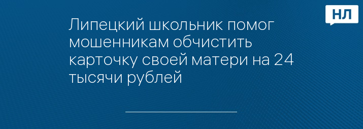 Липецкий школьник помог мошенникам обчистить карточку своей матери на 24 тысячи рублей