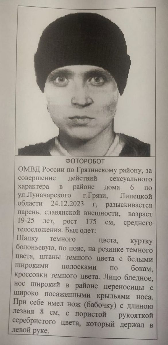 Ориентировка на насильника распространяется в социальных сетях Липецкой области