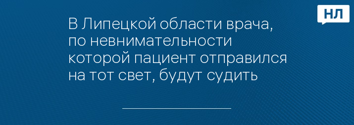 В Липецкой области врача, по невнимательности которой пациент отправился на тот свет, будут судить