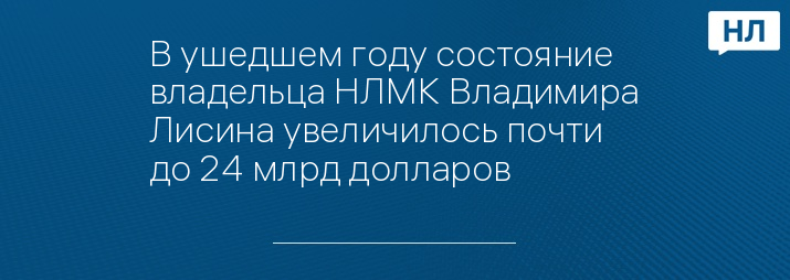В ушедшем году состояние владельца НЛМК Владимира Лисина увеличилось почти до 24 млрд долларов
