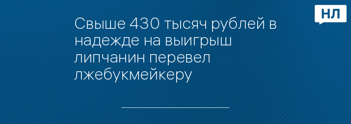 Свыше 430 тысяч рублей в надежде на выигрыш липчанин перевел лжебукмейкеру