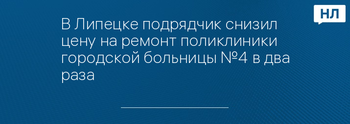 В Липецке подрядчик снизил цену на ремонт поликлиники городской больницы №4 в два раза