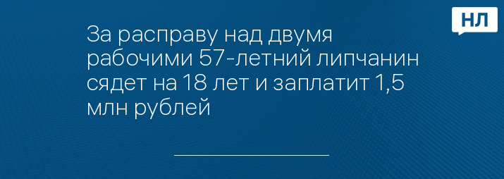 За расправу над двумя рабочими 57-летний липчанин сядет на 18 лет и заплатит 1,5 млн рублей