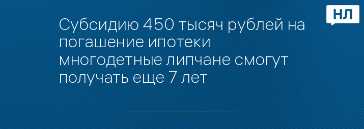450 тысяч на погашение ипотеки многодетные липчане смогут получать еще 7 лет