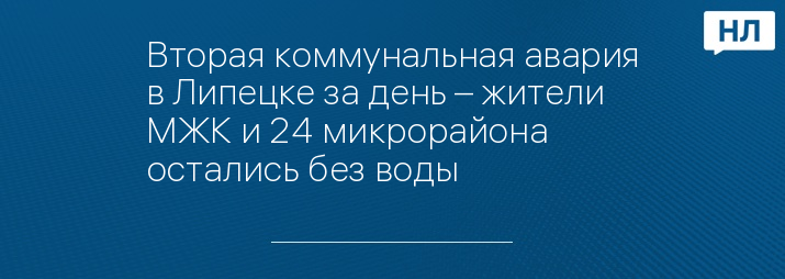Вторая комавария в Липецке за день – жители МЖК и 24 мкр остались без воды