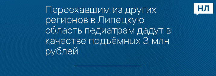 Переехавшим из других регионов в Липецкую область педиатрам дадут в качестве подъёмных 3 млн рублей