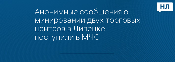 Анонимные сообщения о минировании двух торговых центров в Липецке поступили в МЧС