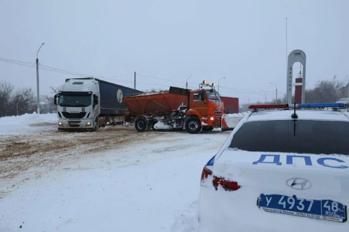 В Данкове большегруз застрял в горке из-за снегопада, движение восстановлено за полчаса