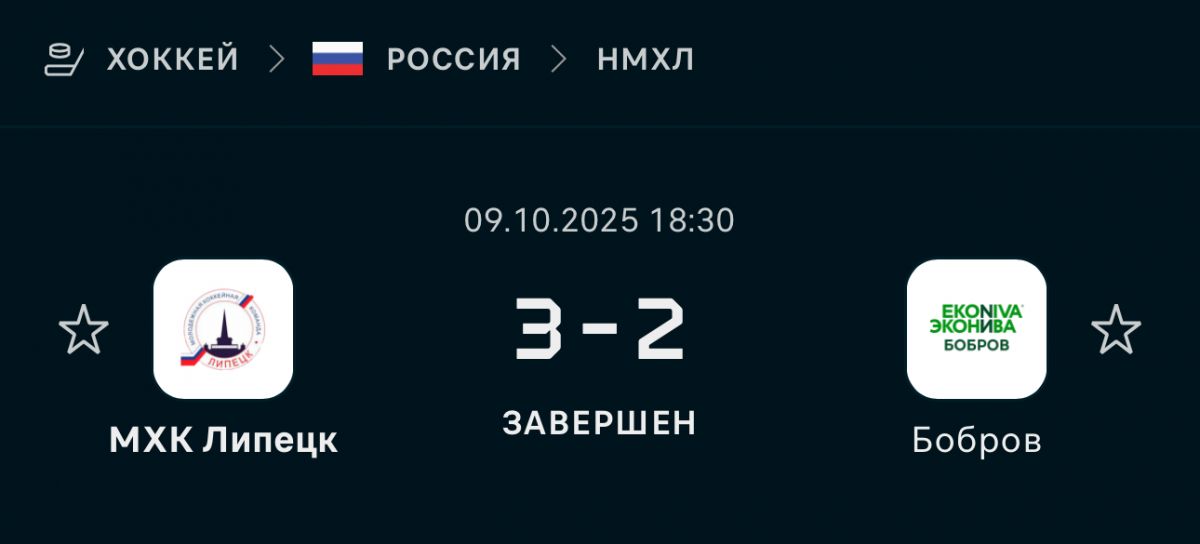 Победа «МХК Липецк» со счетом 3:2 в поединке с командой «Бобров»