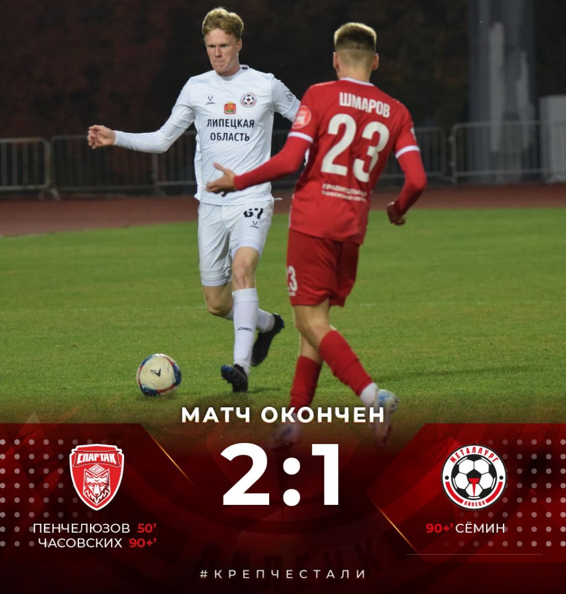 Липецкий «Металлург» проиграл со счетом 2:1 в выездном матче со «Спартаком»