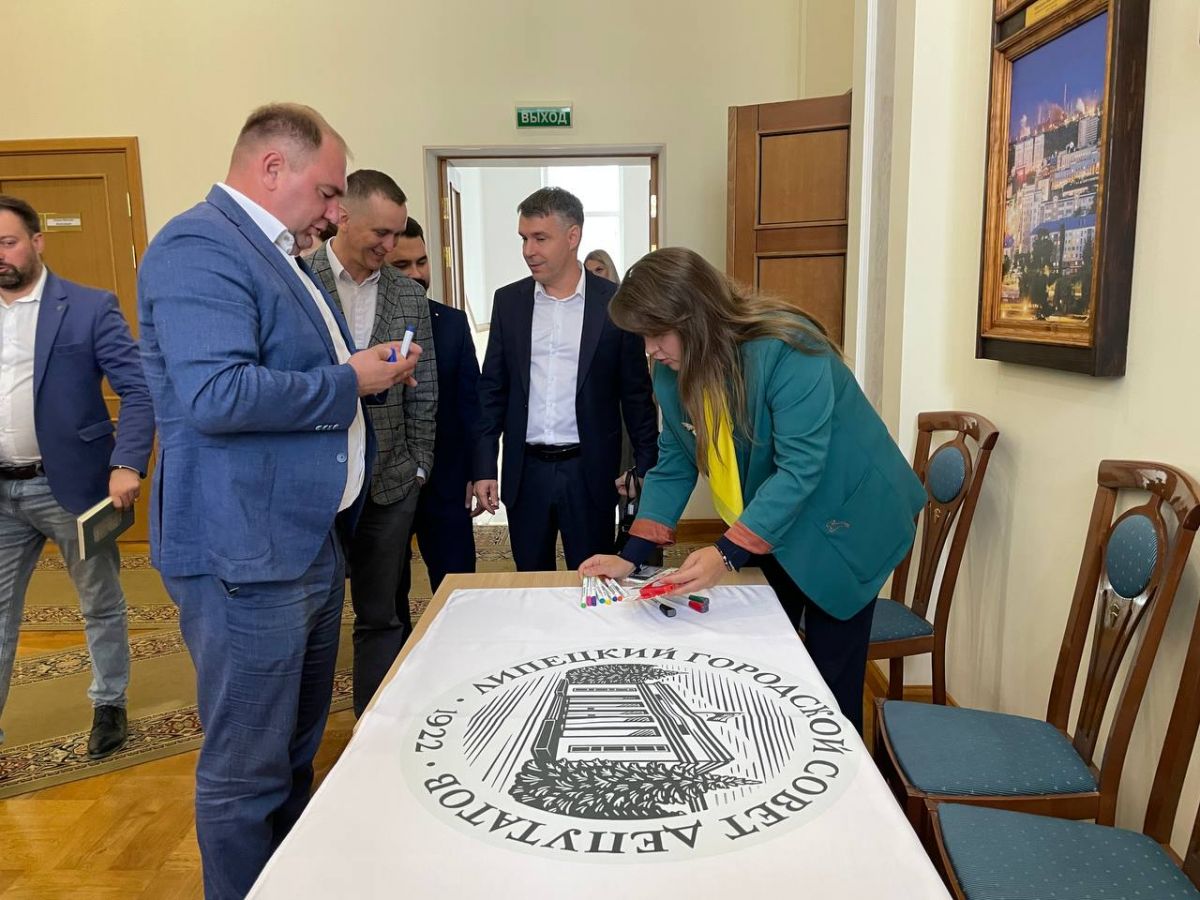 После завершения первой сессии депутаты Липецкого городского Совета седьмого созыва поставили свои подписи на флаге, который будет передан липецкому арт-дивизиону на СВО.