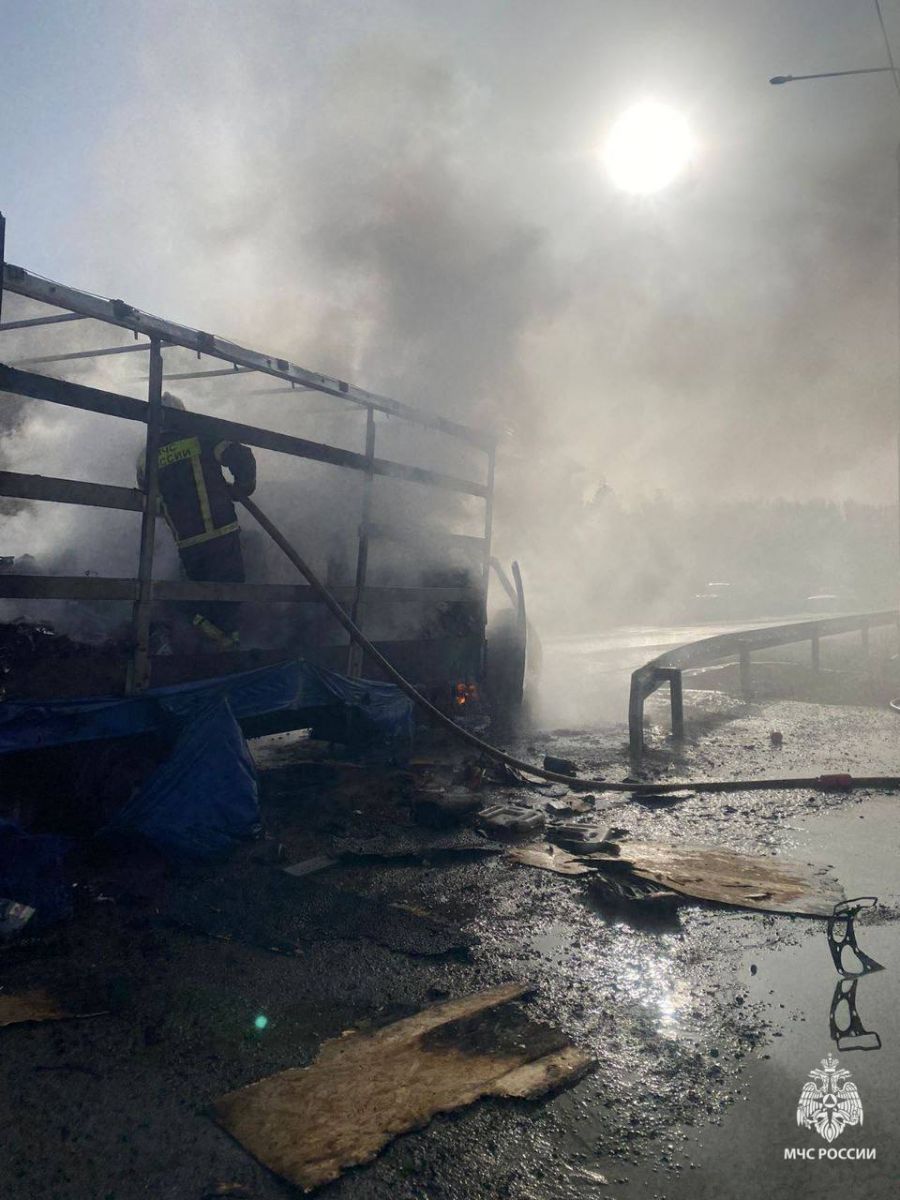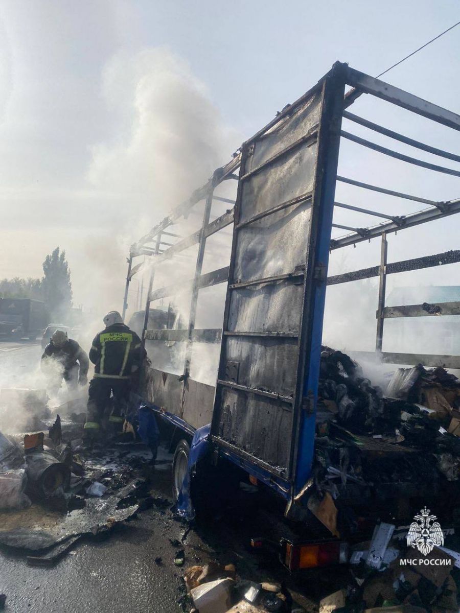 По данным ГУ МЧС России по Липецкой области, уже к 9:24 первые расчеты были на месте, но к тому моменту автомобиль уже полыхал весь. Горел металл автомобиля и перевозимый в кузове груз.