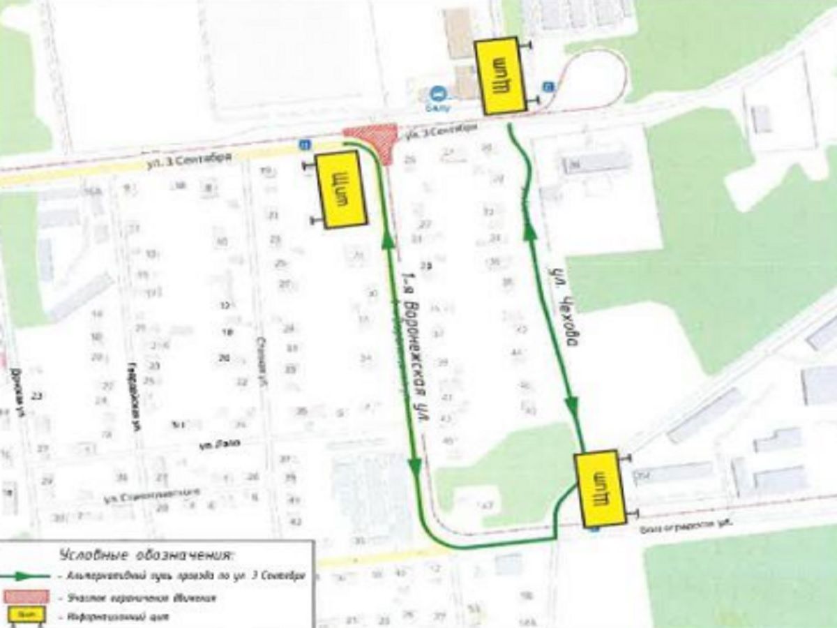 В Липецке с 8 по 12 октября ограничат проезд по улицам 3 Сентября, Воронежская и Чехова