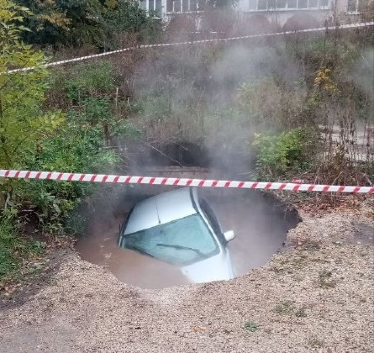 Из-за прорыва теплотрассы в Липецке машина полностью провалилась под землю