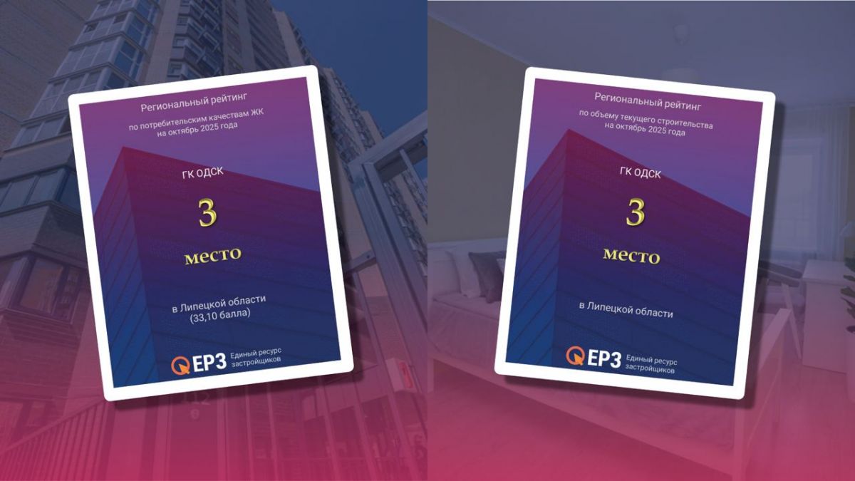 Группа компаний «ОДСК» подтвердила свой статус одного из лидеров строительного рынка Липецкой области, заняв 3-е место в октябрьском рейтинге застройщиков по двум ключевым показателям, согласно данным портала ЕРЗ (Единый реестр застройщиков).