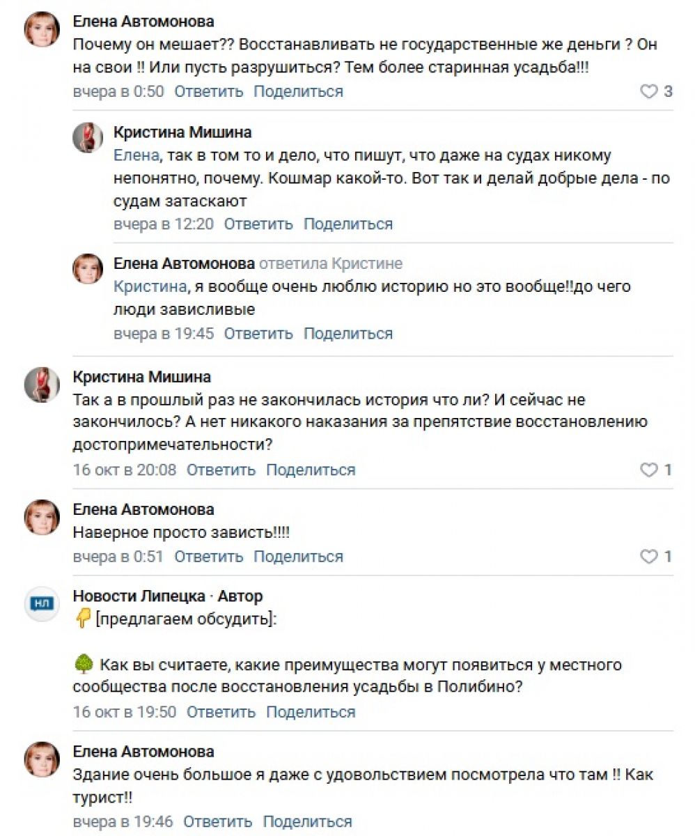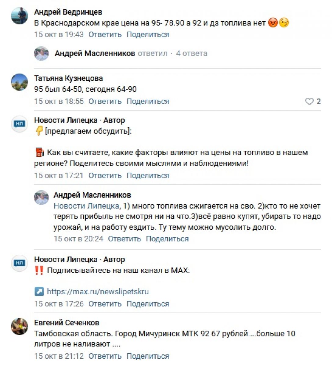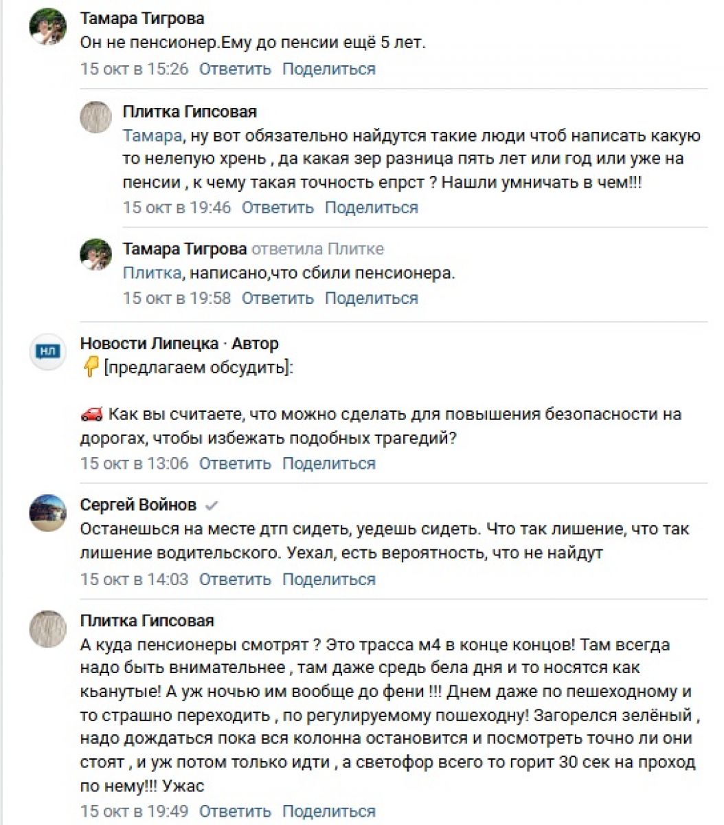 Редакция «Новостей Липецка» продолжает публиковать лучшие комментарии, полученные от читателей в наших соцсетях. Сегодня на очереди подборка за прошедшую неделю, с 12 по 18 октября. Орфография и пунктуация авторов сохранена.