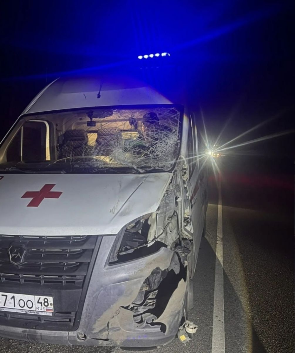 Лось на трассе под Липецком протаранил машину скорой помощи с больным младенцем на борту