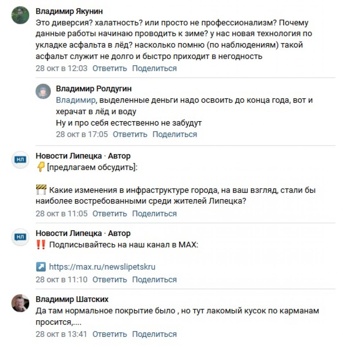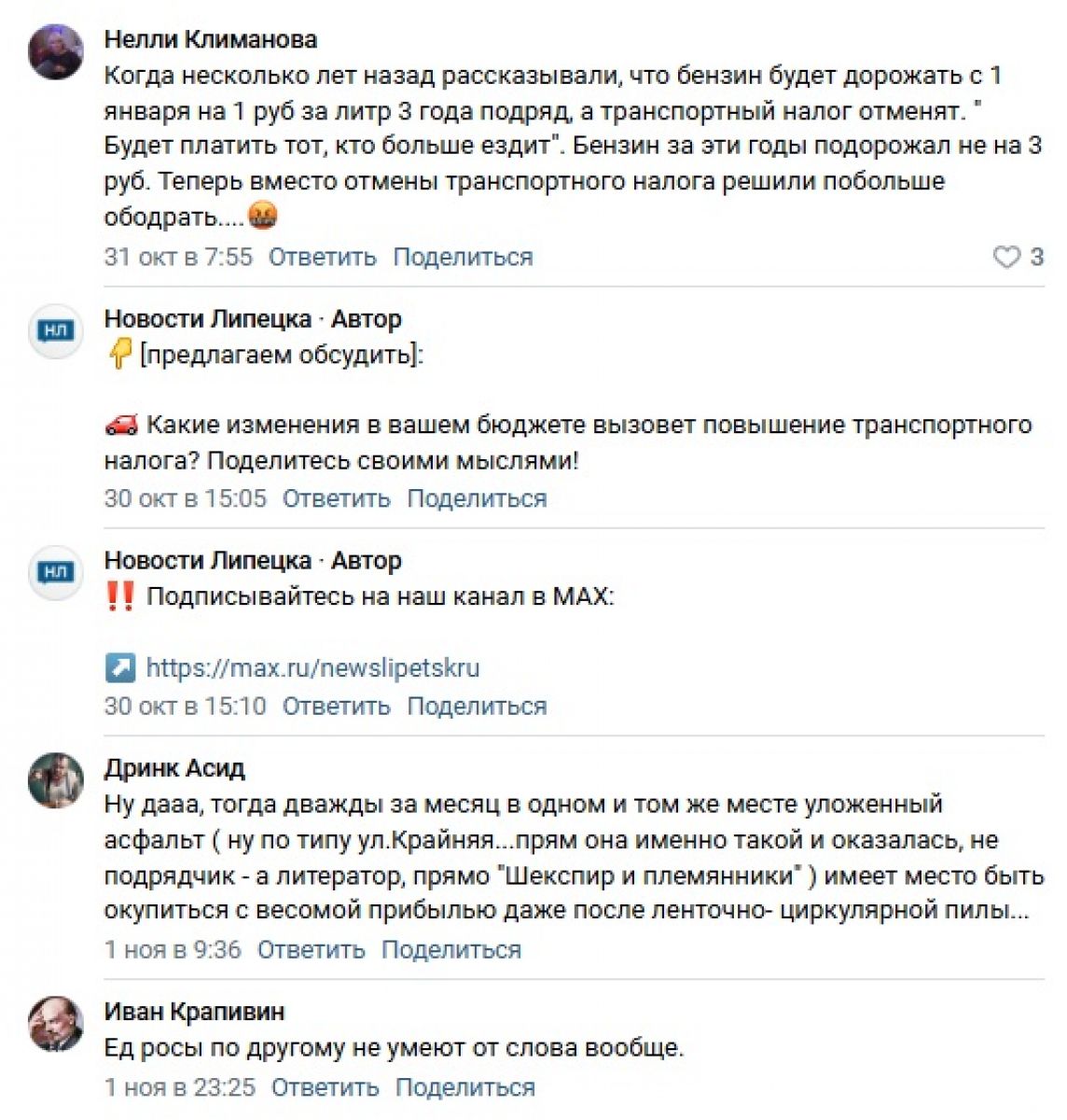 Редакция «Новостей Липецка» продолжает публиковать лучшие комментарии, полученные от читателей в наших соцсетях. Сегодня на очереди подборка за прошедшую неделю, с 19 по 25 октября. Орфография и пунктуация авторов сохранена.