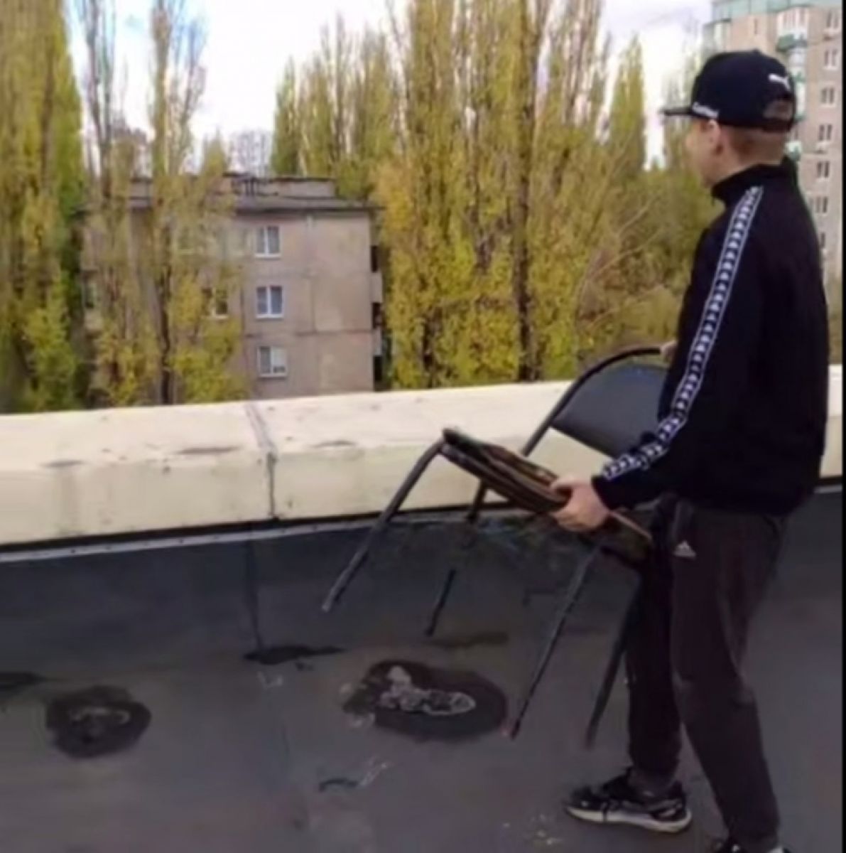 Кадры с места происшествия появились в местных пабликах и мессенджерах: группа молодых людей, забравшись на многометровую высоту, с криками и смехом сбрасывала с крыши стулья и снимает все на видео.