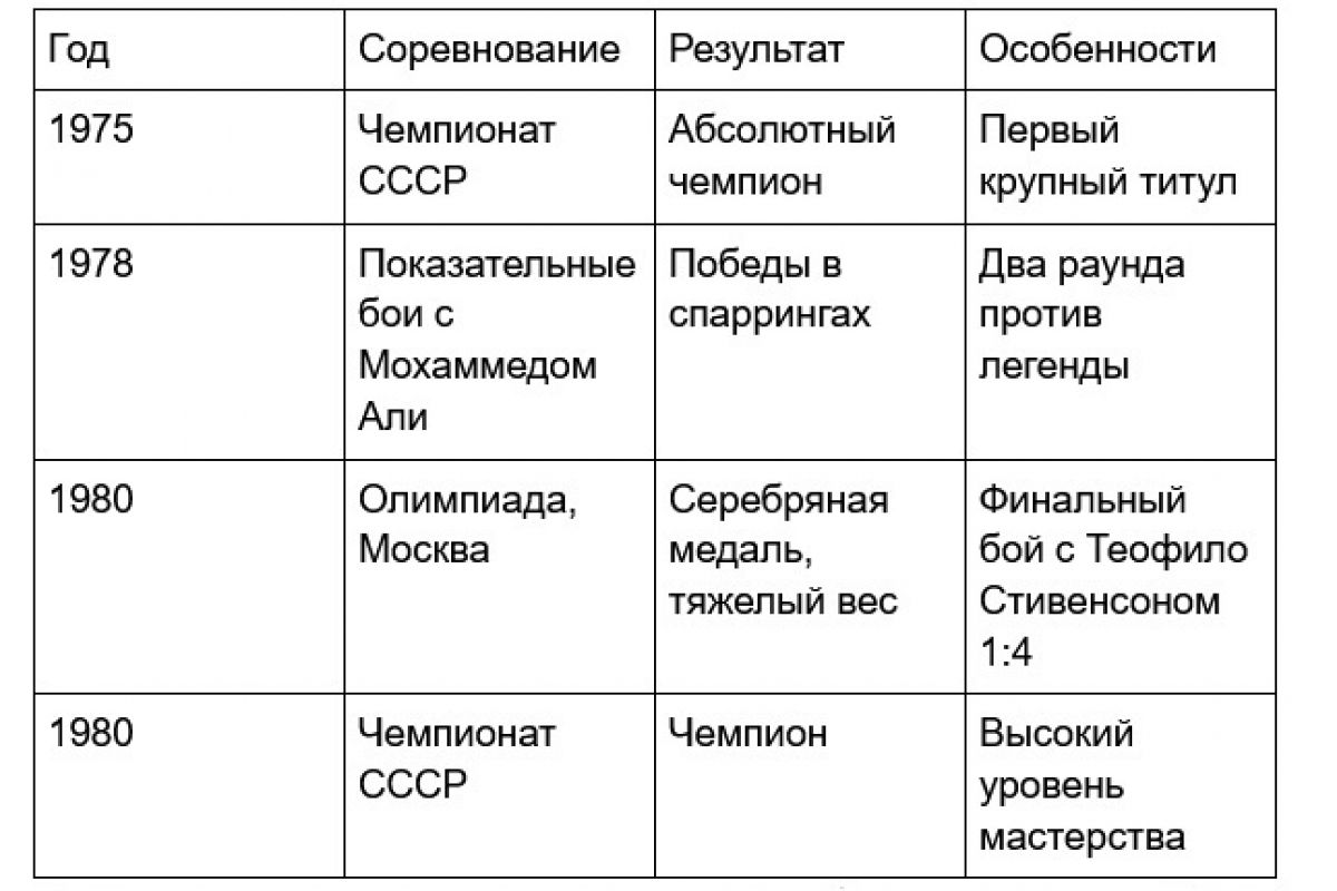 Чтобы сориентироваться в карьере спортсмена было проще, стоит обратить внимание на таблицу с главными достижениями представленную ниже.