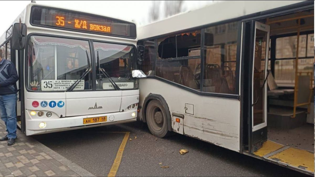 Два липецких автобуса «поспорили», кто быстрее, у памятника Чернобыльцам
