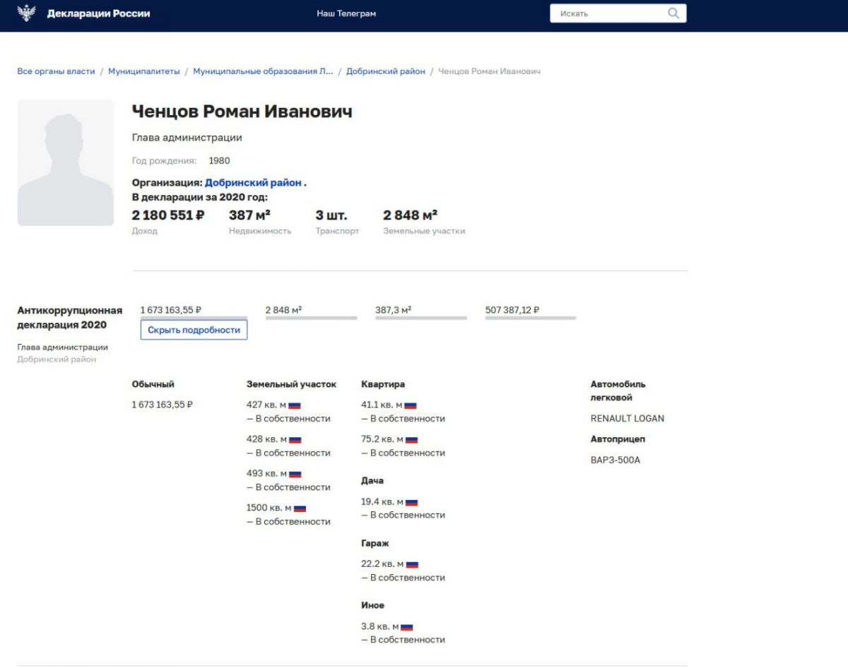 «Площадь» приводит оценку строительных экспертов, согласно которой только себестоимость работ может составлять 35-40 миллионов рублей без учета стоимости земли и отделки. Однако известно, доход на посту главы администрации Липецка с учетом всех надбавок составляет около 130-140 тысяч рублей в месяц, а в последней опубликованной декларации за 2020 год доходы Ченцова вместе с супругой составляли 2,18 миллиона рублей за год. Карьера же его была связана с госслужбой и ветеринарией, но не с бизнесом.