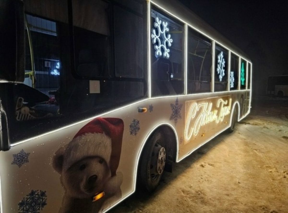 у Грязинского АТП уже сложилась традиция создавать праздничный транспорт. Они давно соревнуются в креативе, чтобы удивлять горожан каждую зиму. Так, к примеру, выглядел новогодний автобус-экспресс два года назад.