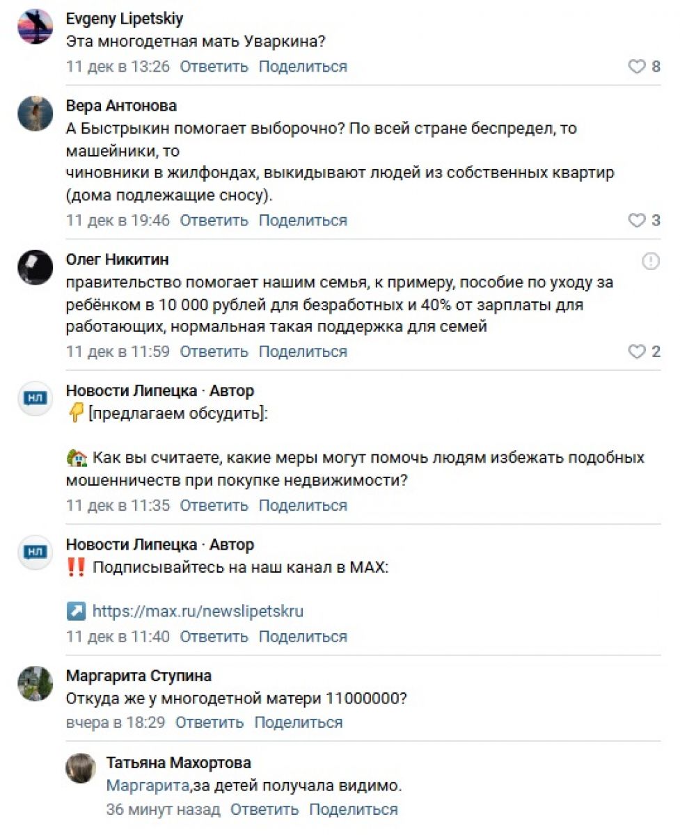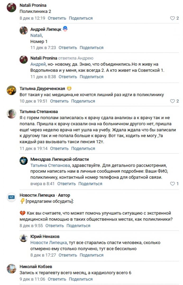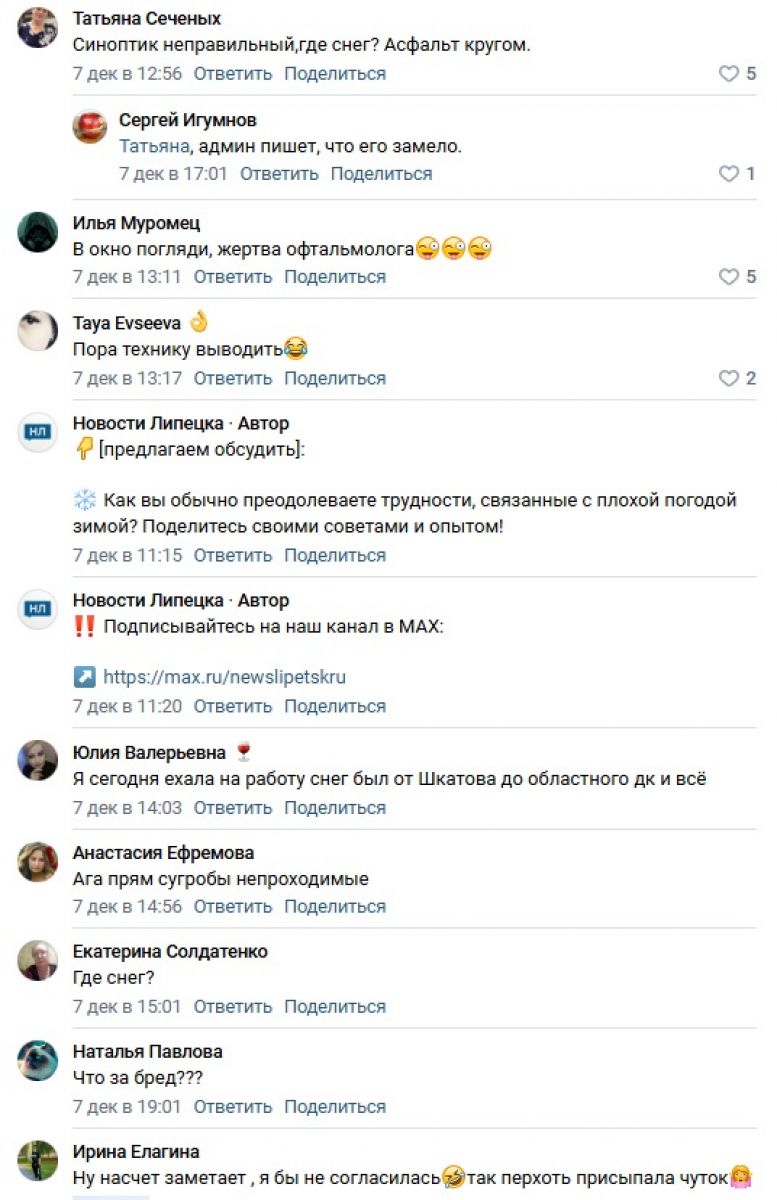 Редакция «Новостей Липецка» продолжает публиковать лучшие комментарии, полученные от читателей в наших соцсетях. Сегодня на очереди подборка за прошедшую неделю, с 7 по 13 декабря. Орфография и пунктуация авторов сохранена.