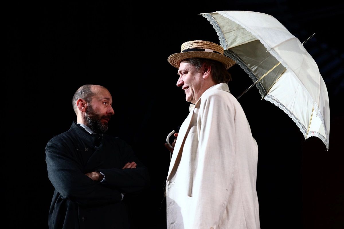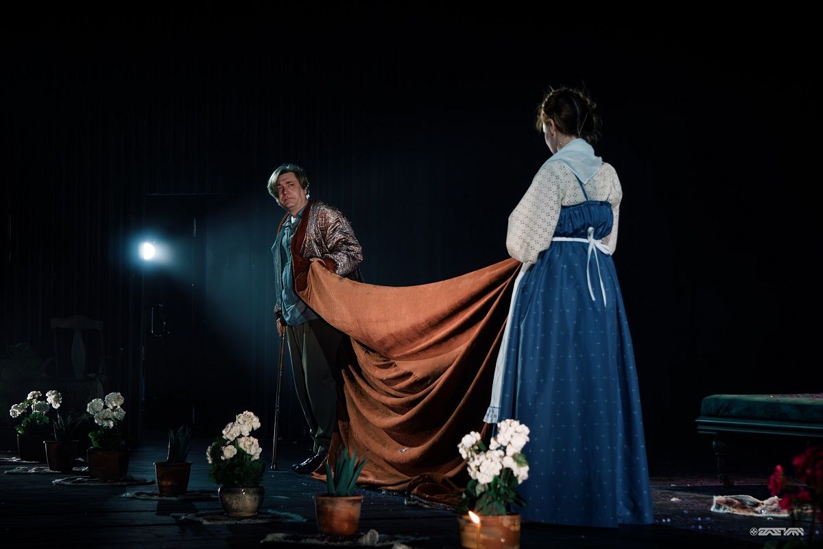 Лауреат Госпремии Александр Баргман в постановке о любви Софьи Толстой и гениального писателя «Русский роман» выбрал на роль Левина Владимира Борисова. Интеллектуальный спектакль оценил не только липецкий зритель – на него приезжают из Москвы. Сейчас в этой же постановке артист играет Черткова – и предстает в другом амплуа, неузнаваемым в великолепном белом костюме.