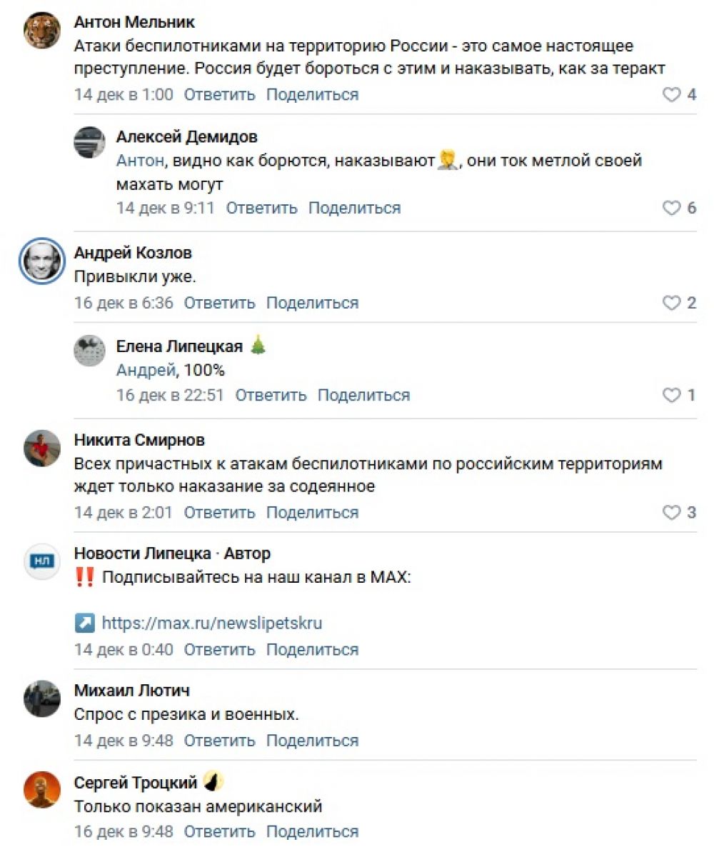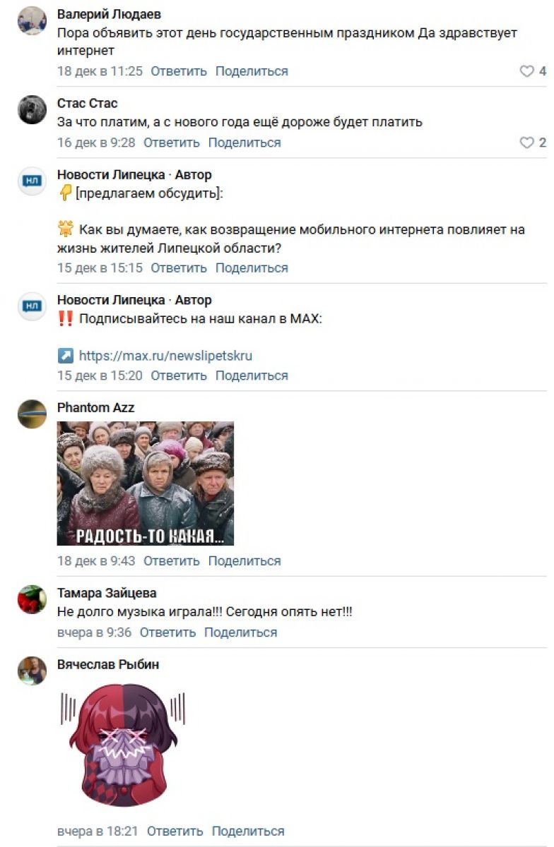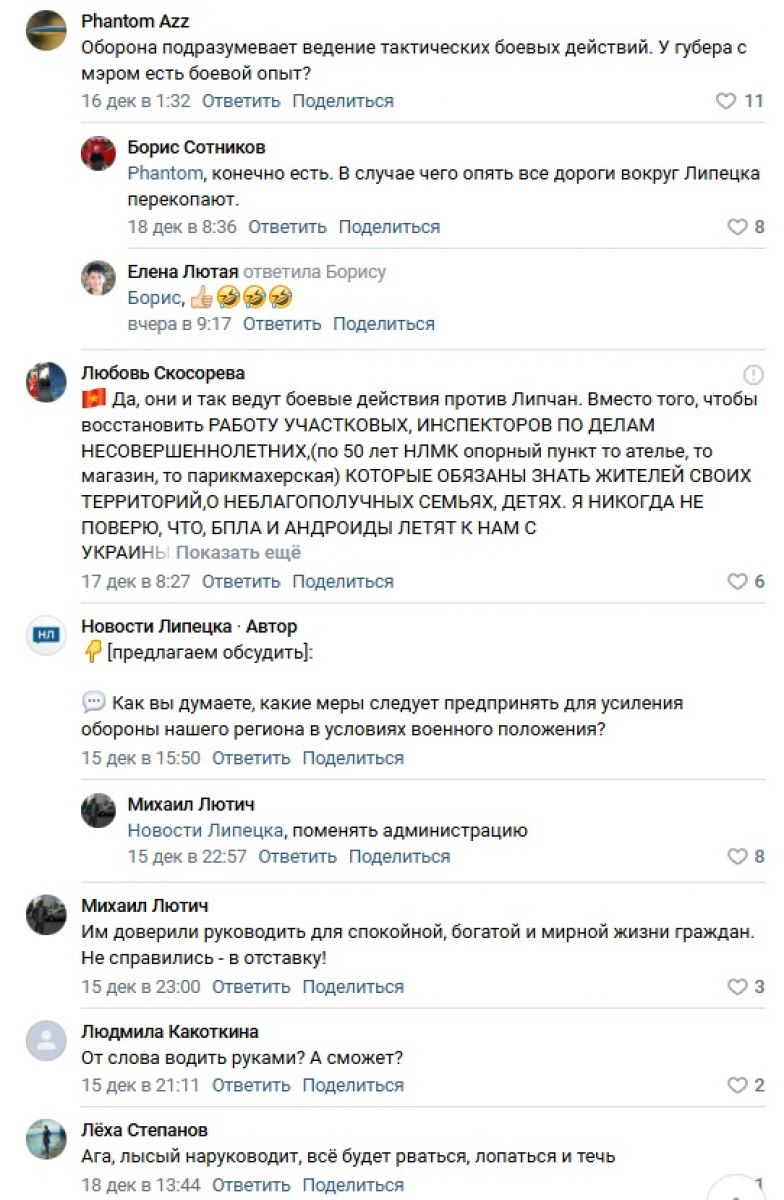 Редакция «Новостей Липецка» продолжает публиковать лучшие комментарии, полученные от читателей в наших соцсетях. Сегодня на очереди подборка за прошедшую неделю, с 14 по 20 декабря. Орфография и пунктуация авторов сохранена.