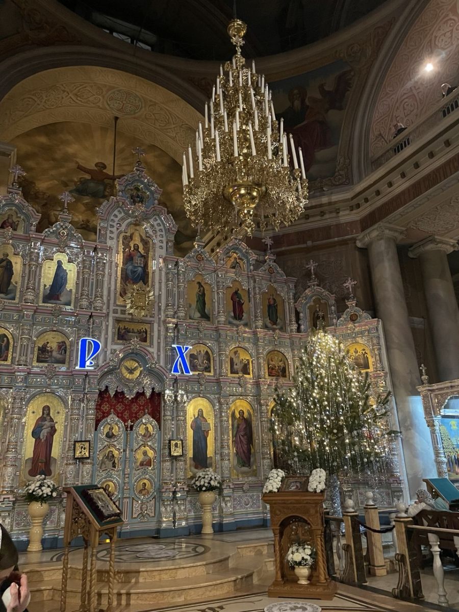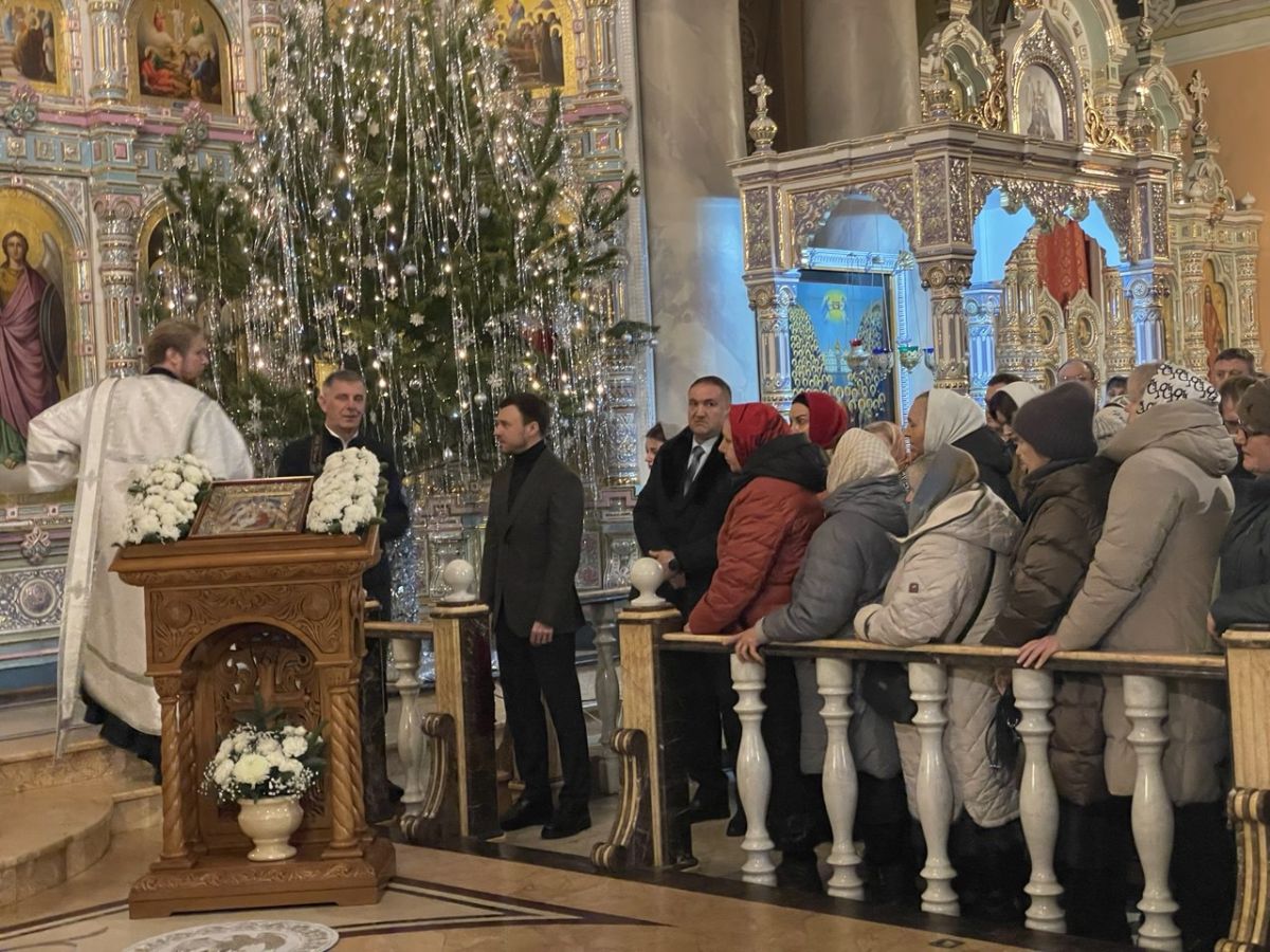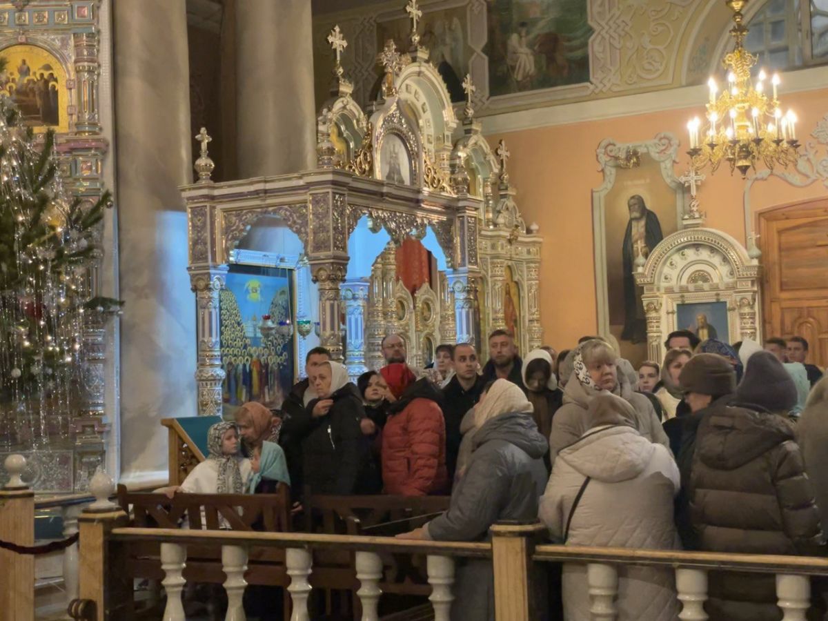 На площади Ленина-Соборная - рождественская елка. Перед храмом, к которому по заснеженной площади тропинками ведут протоптанные следы - силовики и машины кинологов. На ступеньках - уличный рождественский вертеп. Внутри храма - очередь, что называется, «в три вилюшки». На исповедь к священникам выстраиваются почти все, кто пришел.