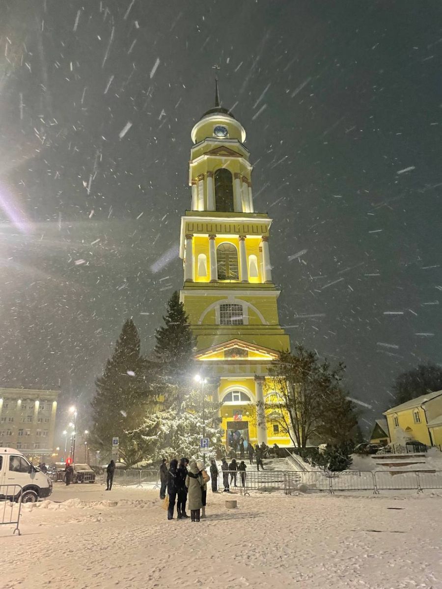 Для православных липчан праздничное богослужение началось с исповеди за час до полуночи. Незадолго до этого Липецк накрыла метель - повалил снег, дороги засыпало настолько, что все предыдущие старания спецслужб оказались напрасными. Но настоящая зима и свежий снежок придали ночному городу еще более праздничный вид.