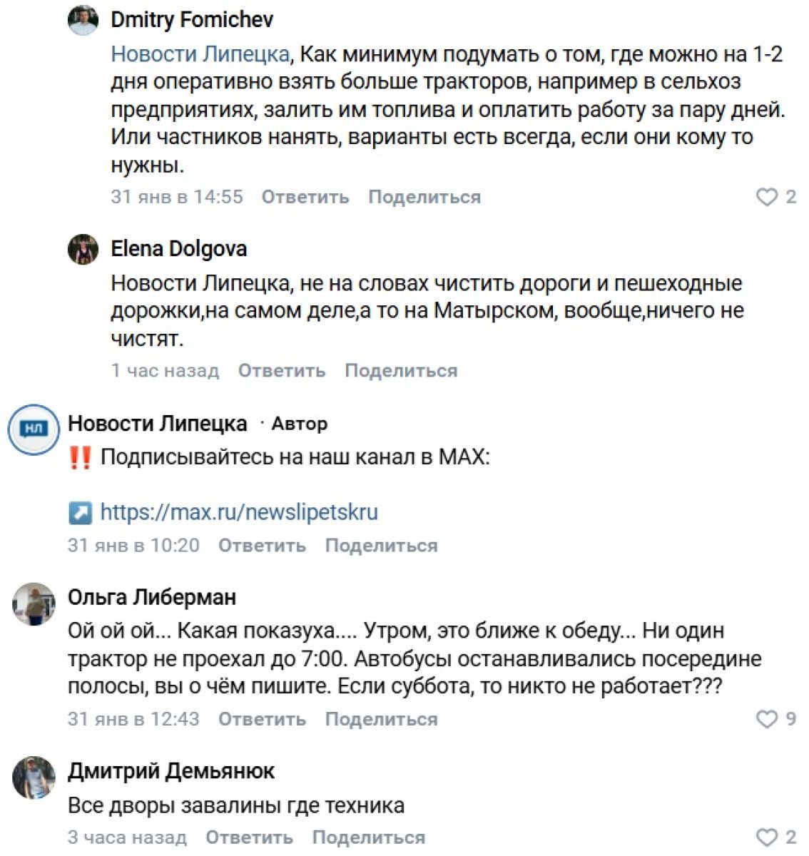 Редакция «Новостей Липецка» продолжает публиковать лучшие комментарии, полученные от читателей в наших соцсетях. Сегодня на очереди подборка за прошедшую неделю, с 25 по 31 января. Орфография и пунктуация авторов сохранена.
