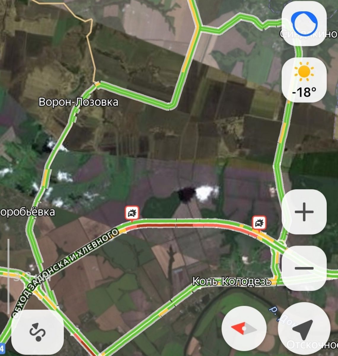 Кабина воронежского тягача въехала в кузов с досками лобовым стеклом. Предположительно, водители в аварии не пострадали. Однако последствия аварии могут почувствовать на себе все, кто едет по этому направлению: на объездной дороге Задонска и Хлевного растянулась пробка.