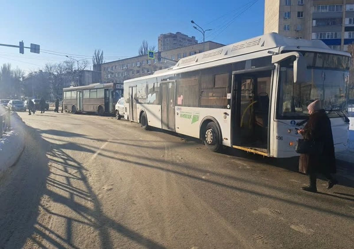 В Липецке Hyundai зажало между двумя автобусами в цепной аварии на проспекте Победы