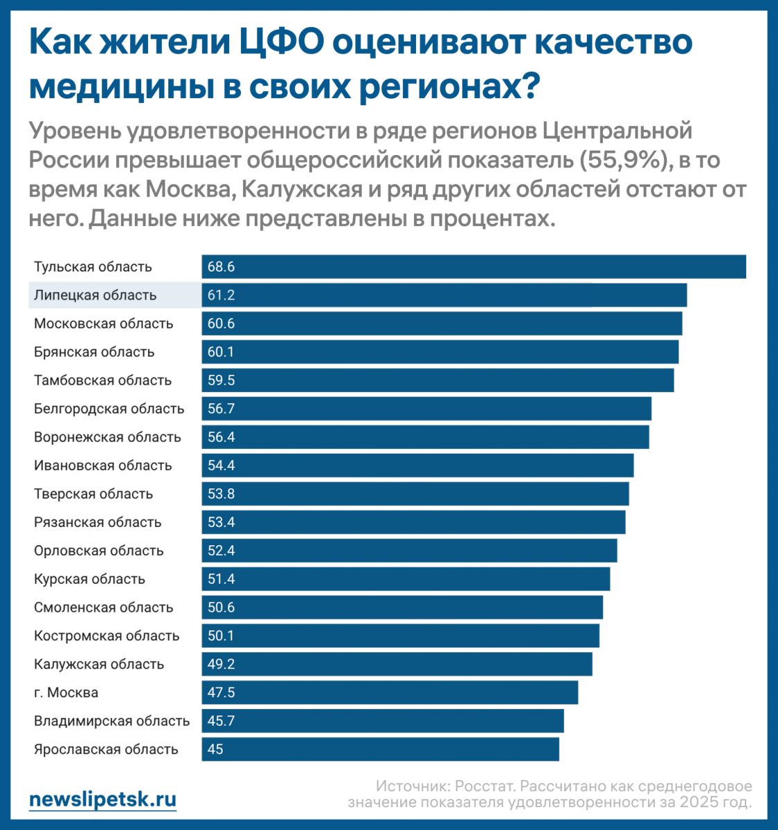 Липецкая область на 2 месте в ЦФО по удовлетворенности медициной в 2025 году