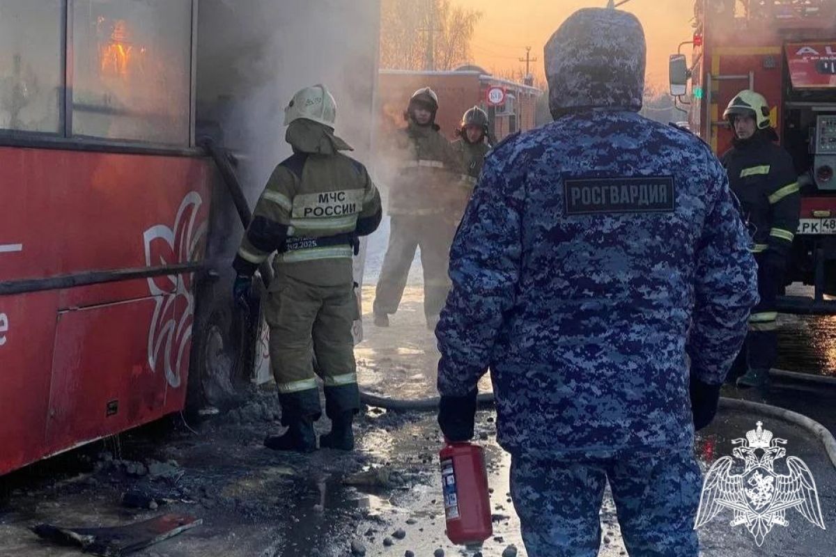 Как сообщили в пресс-службе ведомства, сотрудники вневедомственной охраны Росгвардии по Липецкой области заметили дым во время движения по маршруту. Экипаж сразу остановился и направился к автобусу. В первую очередь они помогли вывести людей из салона и убедились, что внутри никого не осталось.