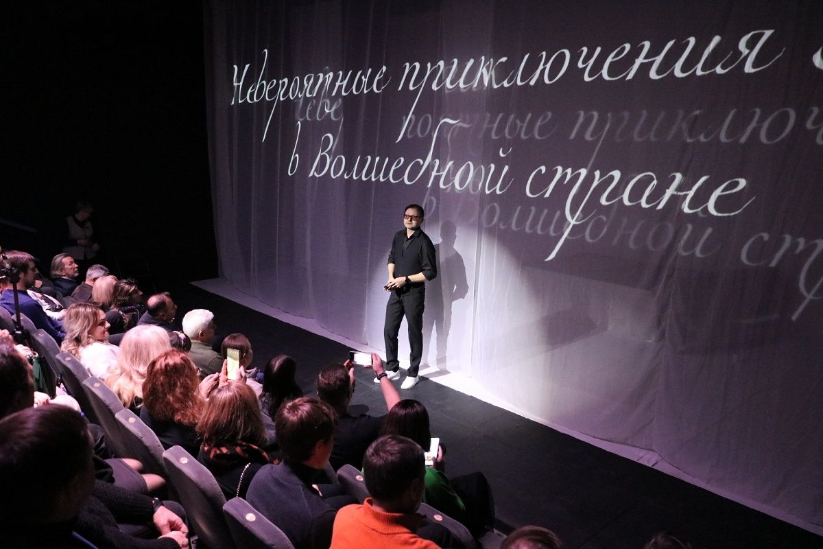 «Я почитал, посмотрел - говорю, я понимаю, что это очень большой масштаб, и у нас не хватает, условно, артистов массовых - жителей волшебной страны. Мы долго искали форму, как это сделать при минимальном бюджете, и решили, что это будет проекция. Думали, что сначала задействуем кукол, и вдруг меня осенило, что у меня же есть моя театральная студия «Дебют», которой я руковожу, там есть ребята, и так родилась эта совместная идея - сделать спектакль со студией и с театром. В шутку мы назвали это проектом двух министерств, - министерства образования и министерства культуры», - рассказал Евгений Азманов.