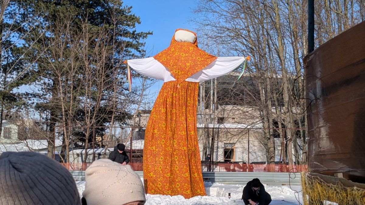 Перед проводами зимы у чучела раздался салют - цветной фейерверк распугал птиц. Собаки отчаянно лаяли.