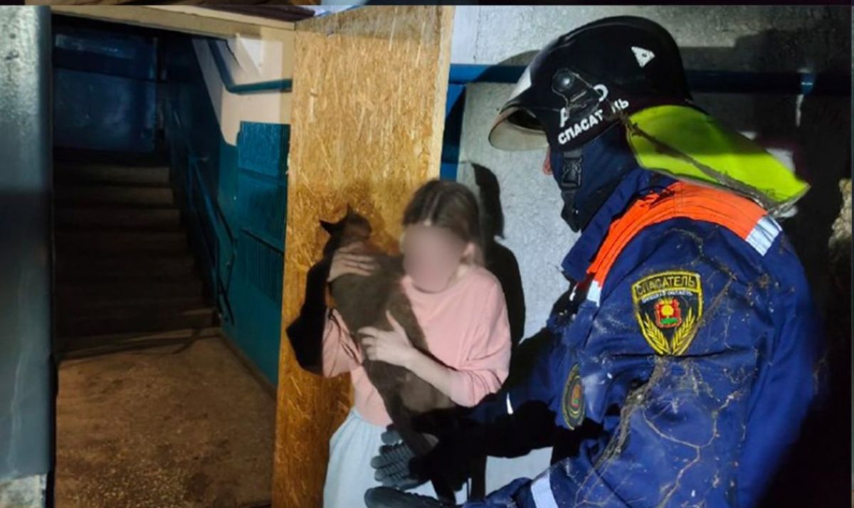 Молоденькая хозяйка кота расплакалась, когда спасатели вызволили её питомца из вентиляции в Грязях
