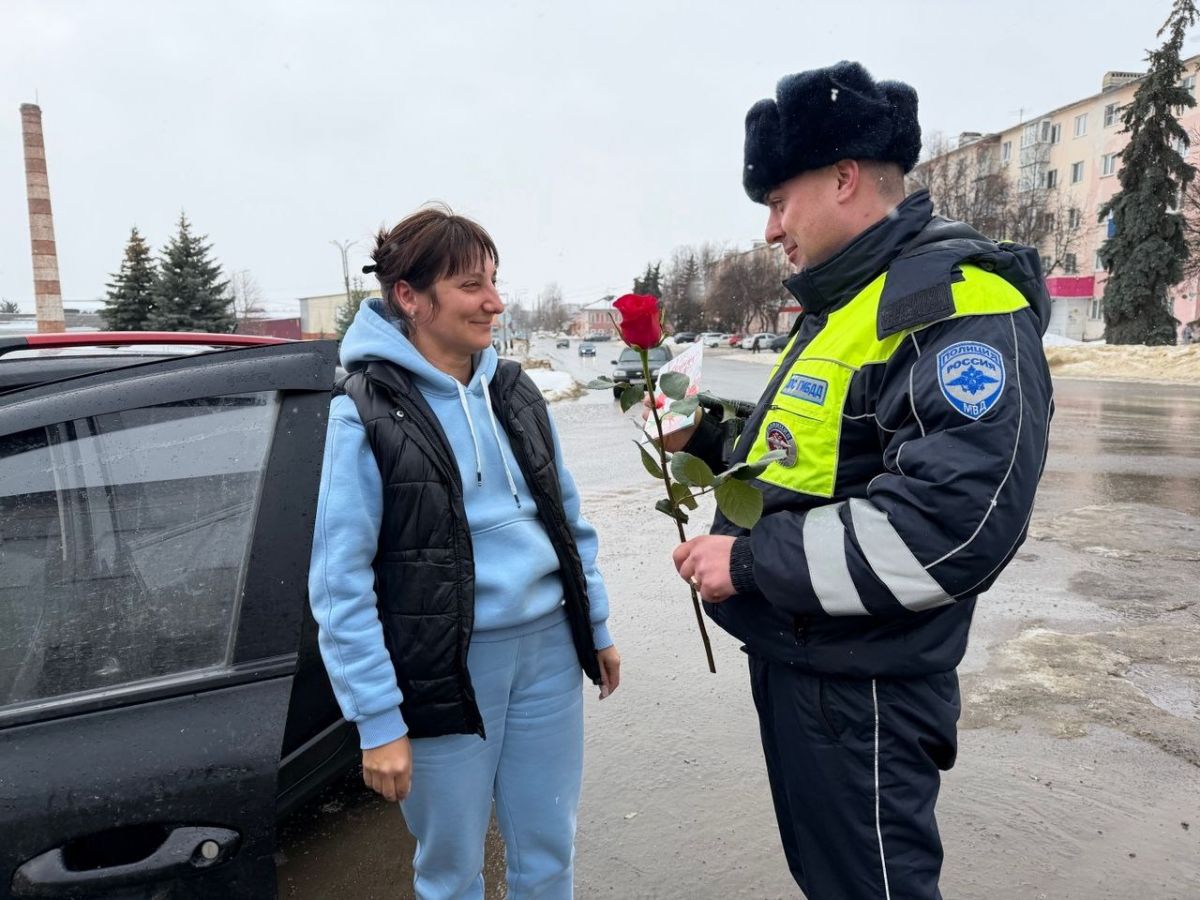 Розы вместо штрафа: елецкие автоинспекторы ловили на дороге женщин-водителей, чтобы поздравить с 8 Марта