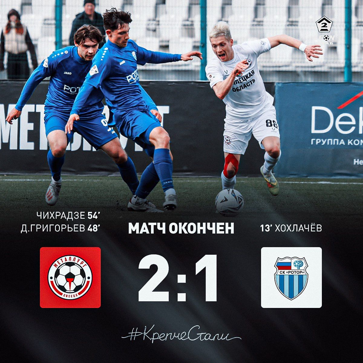 «Металлург» из Липецка победил «Ротор-2» в матче Второй лиги со счётом 2:1