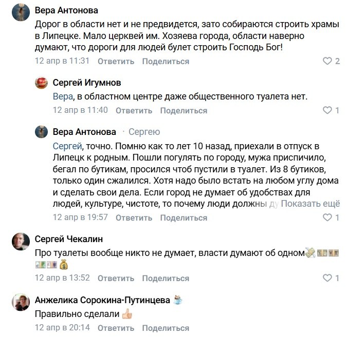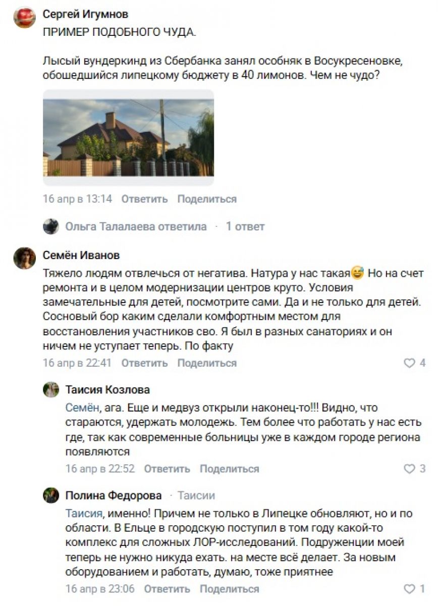 Редакция «Новостей Липецка» продолжает публиковать лучшие комментарии, полученные от читателей в наших соцсетях. Сегодня на очереди подборка за прошедшую неделю, с 12 по 18 апреля. Орфография и пунктуация авторов сохранена.