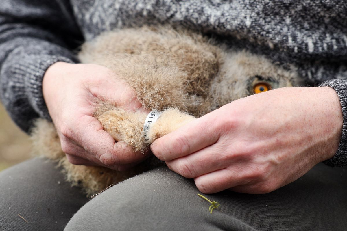 Птенцов уже отсадили от родителей и окольцевали. На метке указаны страна, заповедник и уникальный порядковый номер особи. Это поможет идентифицировать птицу в будущем. А пока молодняк усиленно кормят и готовят к следующему этапу взращивания. Через пару месяцев совят переселят в лесной вольер, где они будут привыкать к дикой природе. Летом их выпустят в естественную среду обитания.